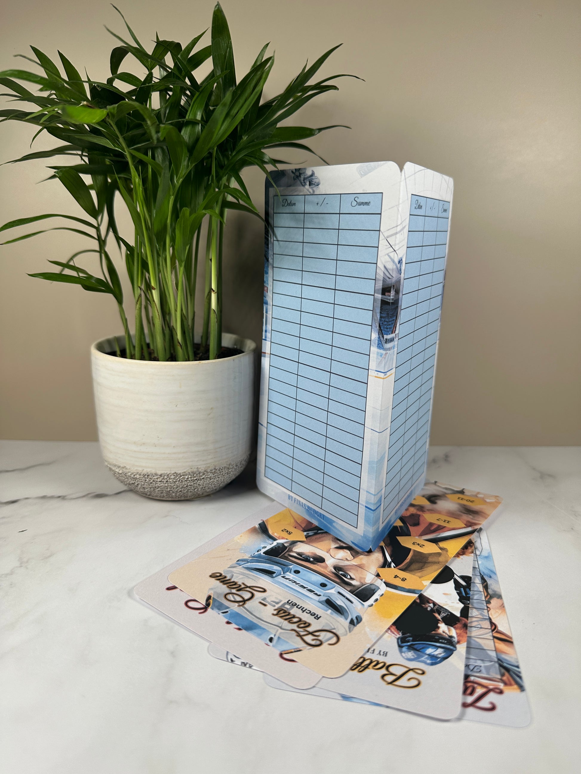 Diese Handgemachte 3er Klappkarte mit Zusatz lässt dich spielend für deine Eishockey Wünsche sparen. Der Endbetrag ist wegen dem würfeln eine Überraschung . Die Challenge ist auf 200g Papier gedruckt, in A6 und passt in die Zipper. Auf der Rückseite sind zwei grosse Tracker. Dazu kommen noch 3 Challenges und einen Zusatztracker.
