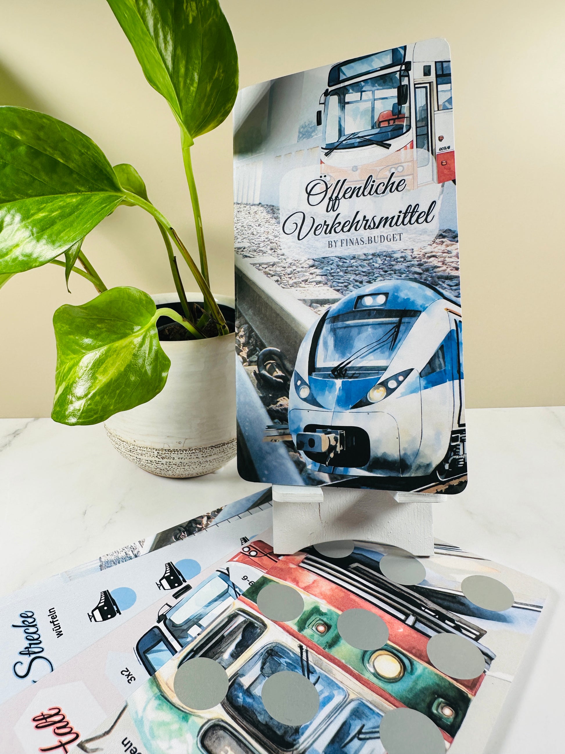 Diese Handgemachte 3er Klappkarte mit Zusatz lässt dich spielend für dein Ticket für die Öffendlichen Verkehrsmittel sparen. Der Endbetrag ist wegen dem würfeln eine Überraschung . Die Challenge ist auf 200g Papier gedruckt, in A6 und passt in die Zipper. Auf der Rückseite sind zwei grosse Tracker. Dazu kommen noch 3 Challenges und einen Zusatztracker.