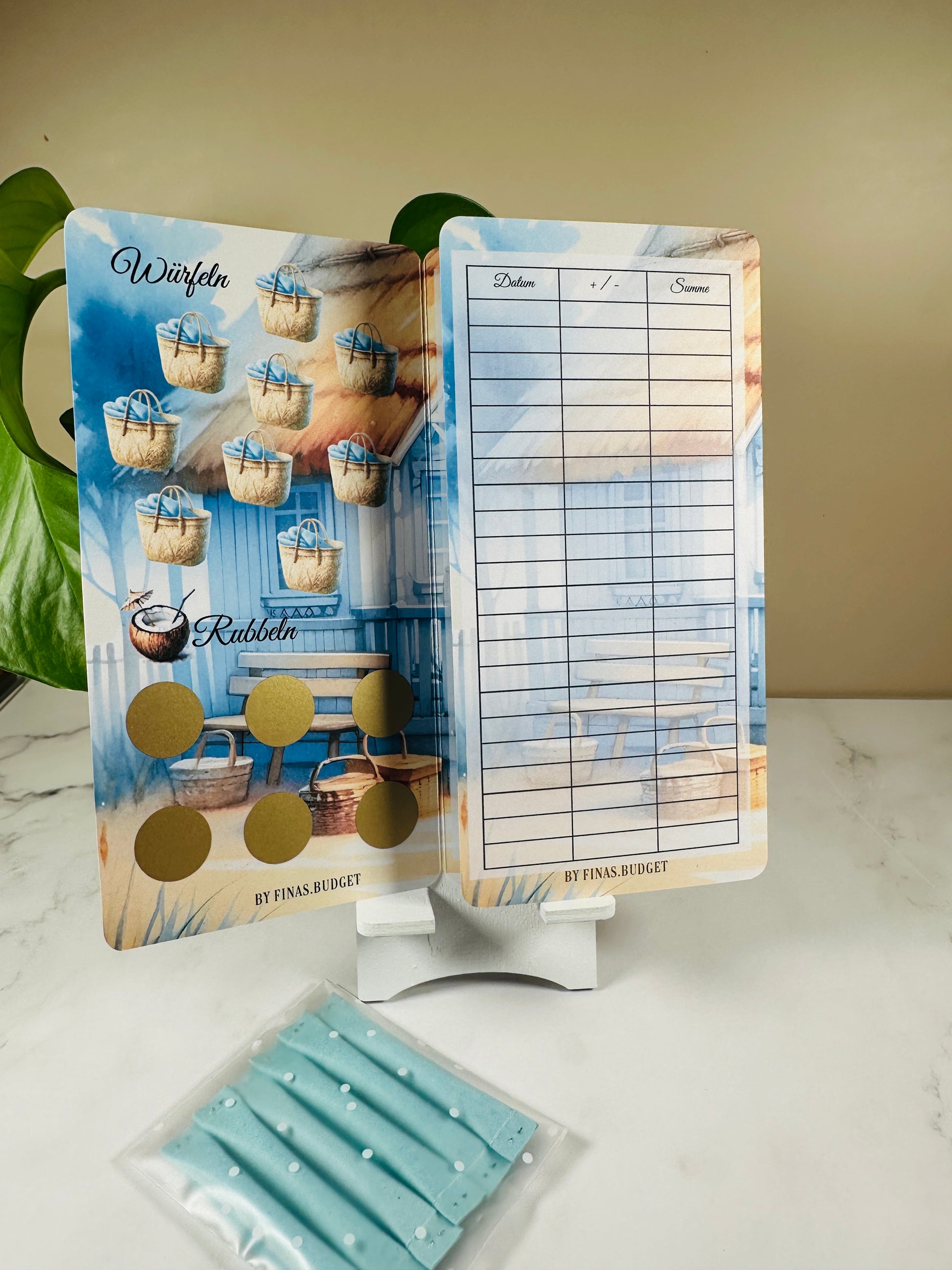 Diese Handgemachte 3er Klappkarte lässt dich spielend auf den nächsten Urlaub sparen. Der Endbetrag ist wegen den Losen eine Überraschung .